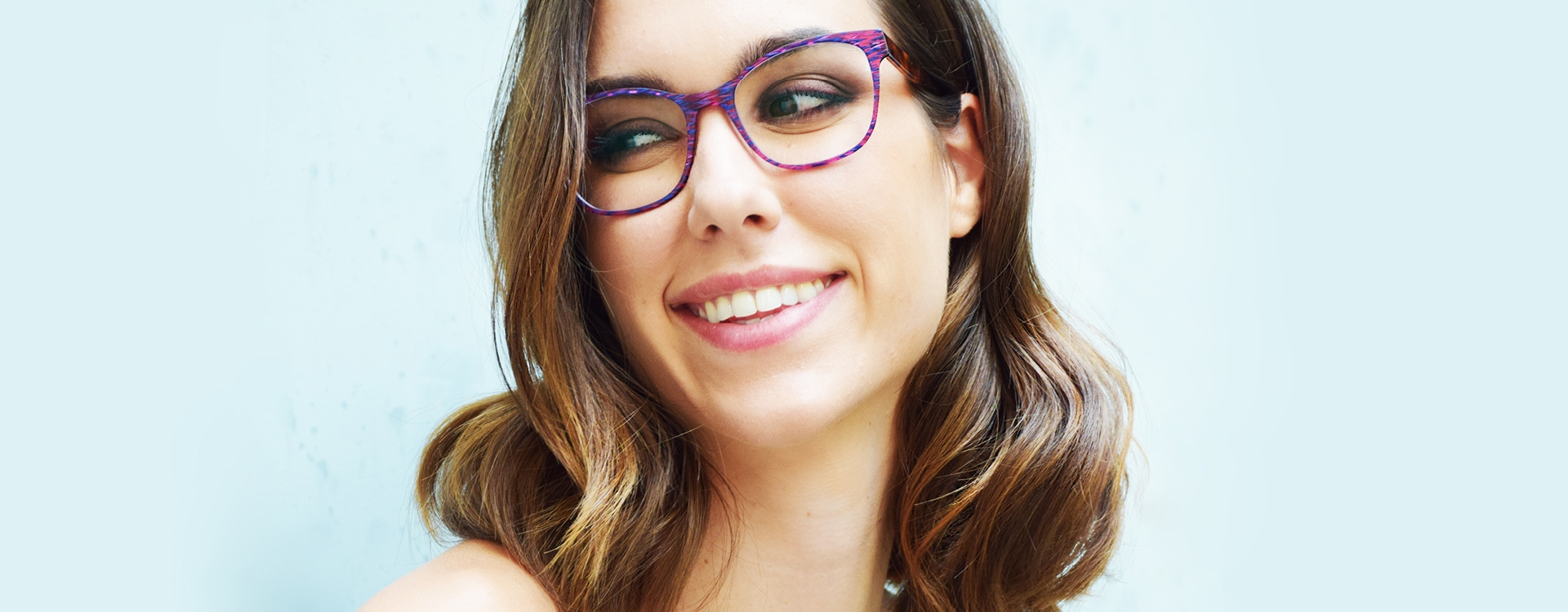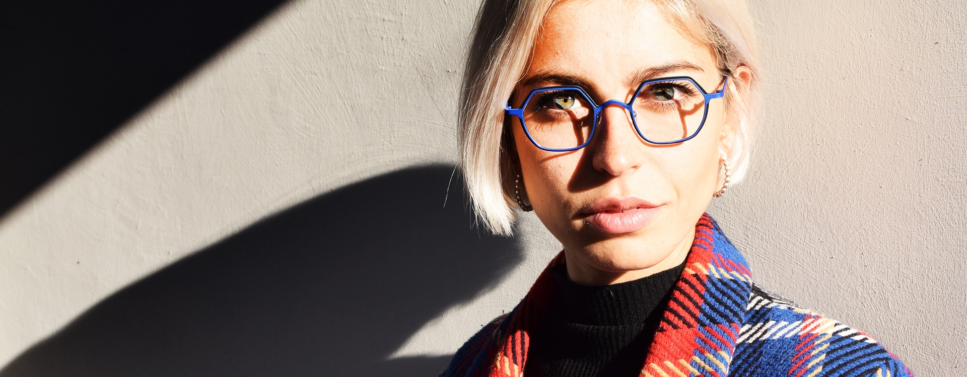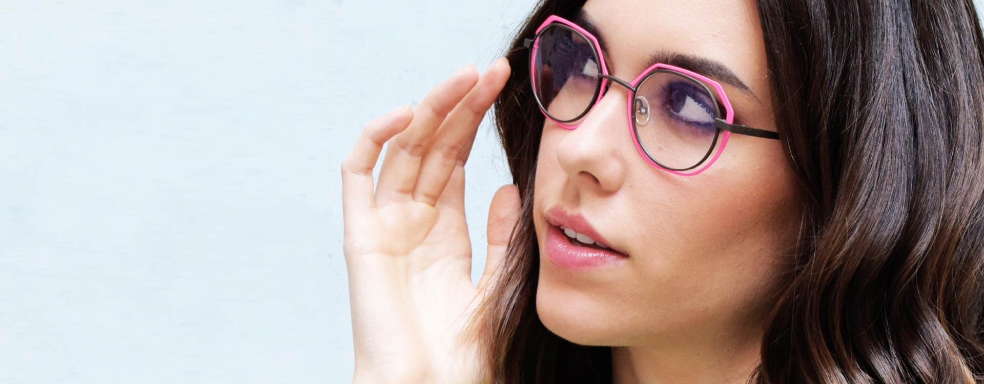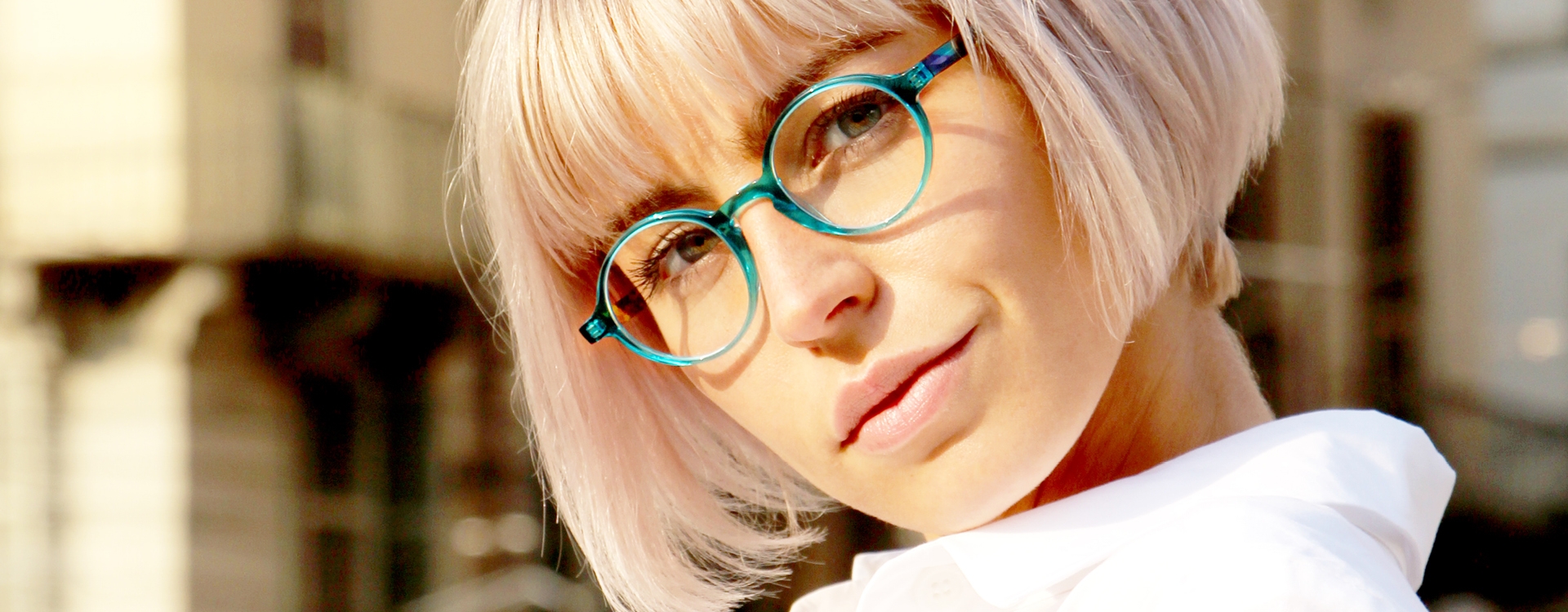 Canlı blok renklerde, asetat ve metalden, kendine özgü sesiyle bir gözlük koleksiyonu.